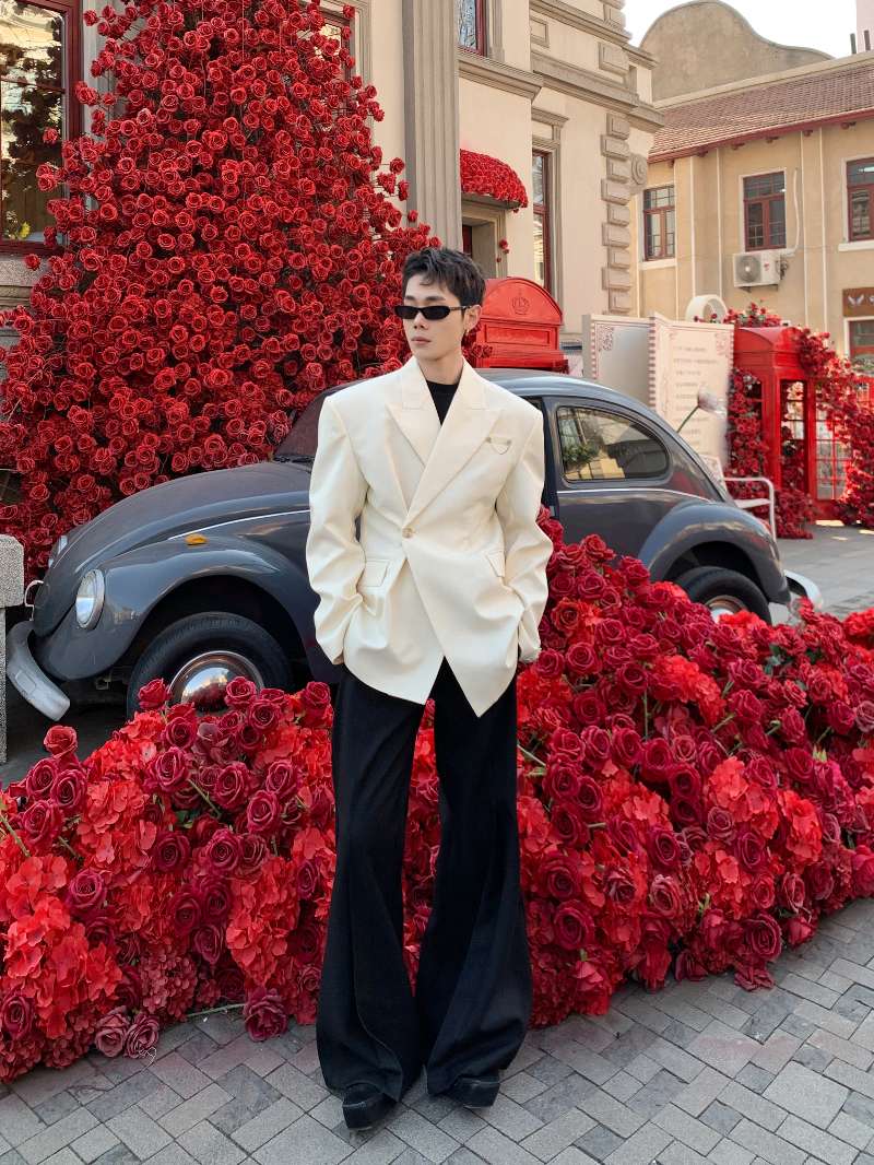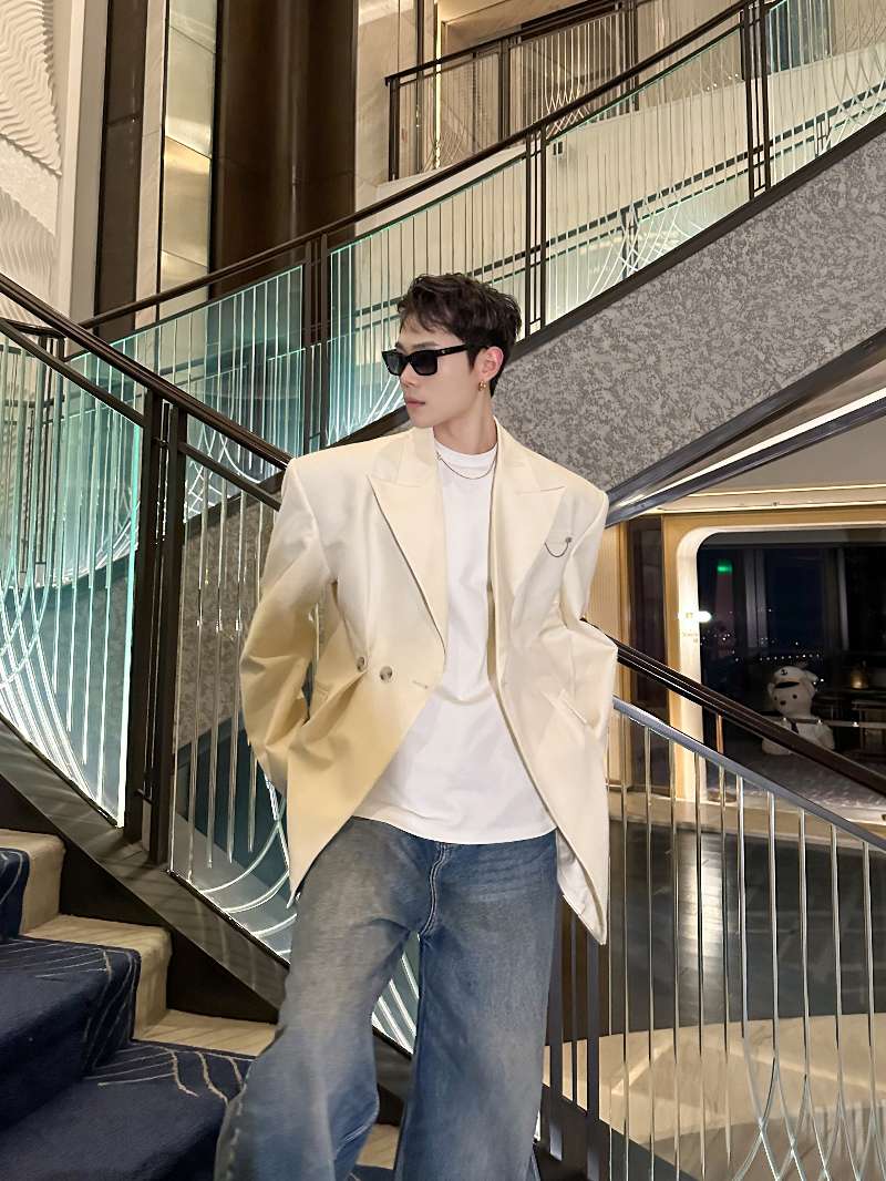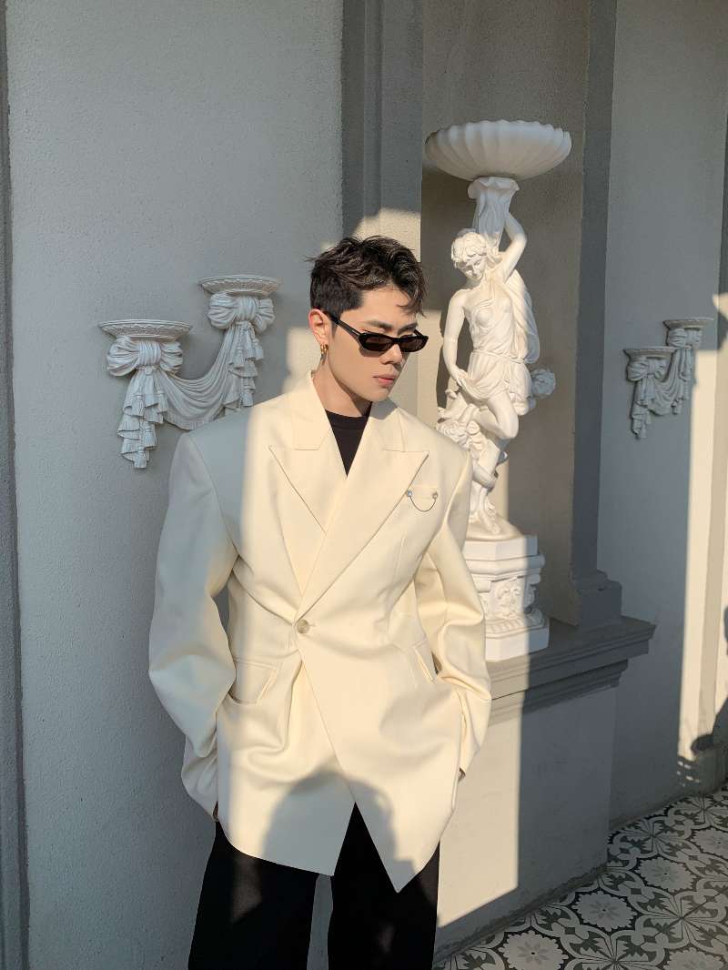 DBW Doublewin Apricot Waist-Cinching Asymmetric Blazer