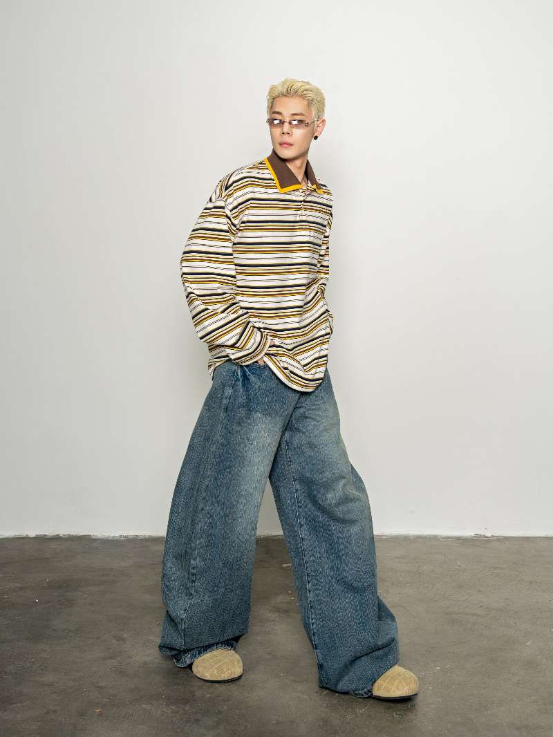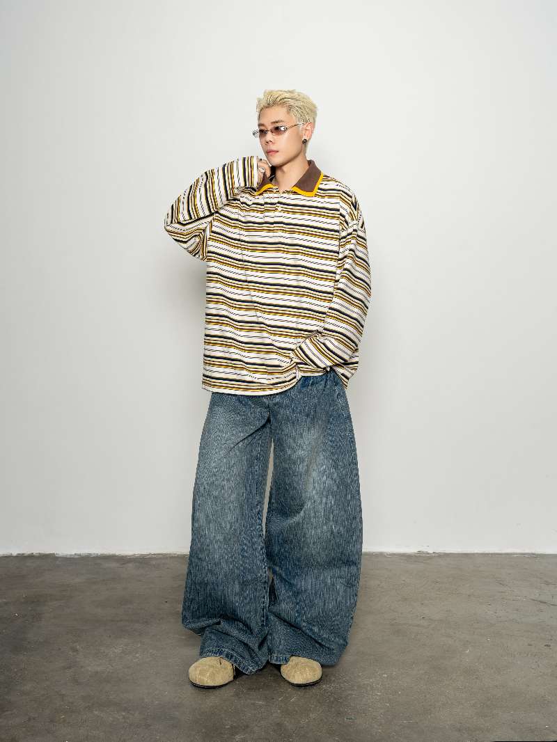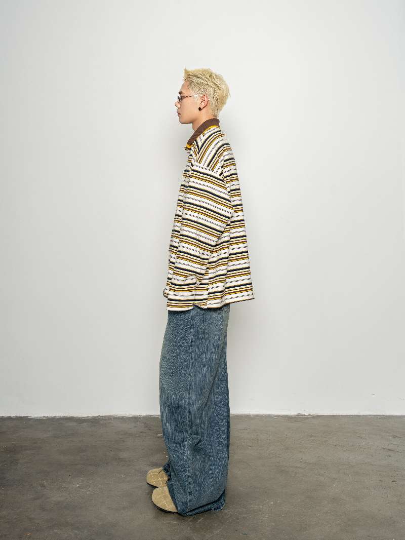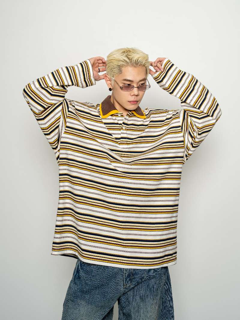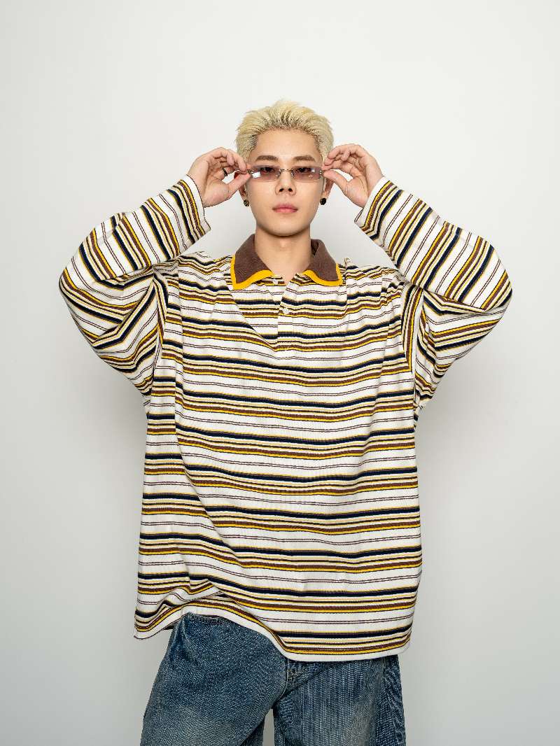 DBW Doublewin Double Collar Stripe Polo Shirt