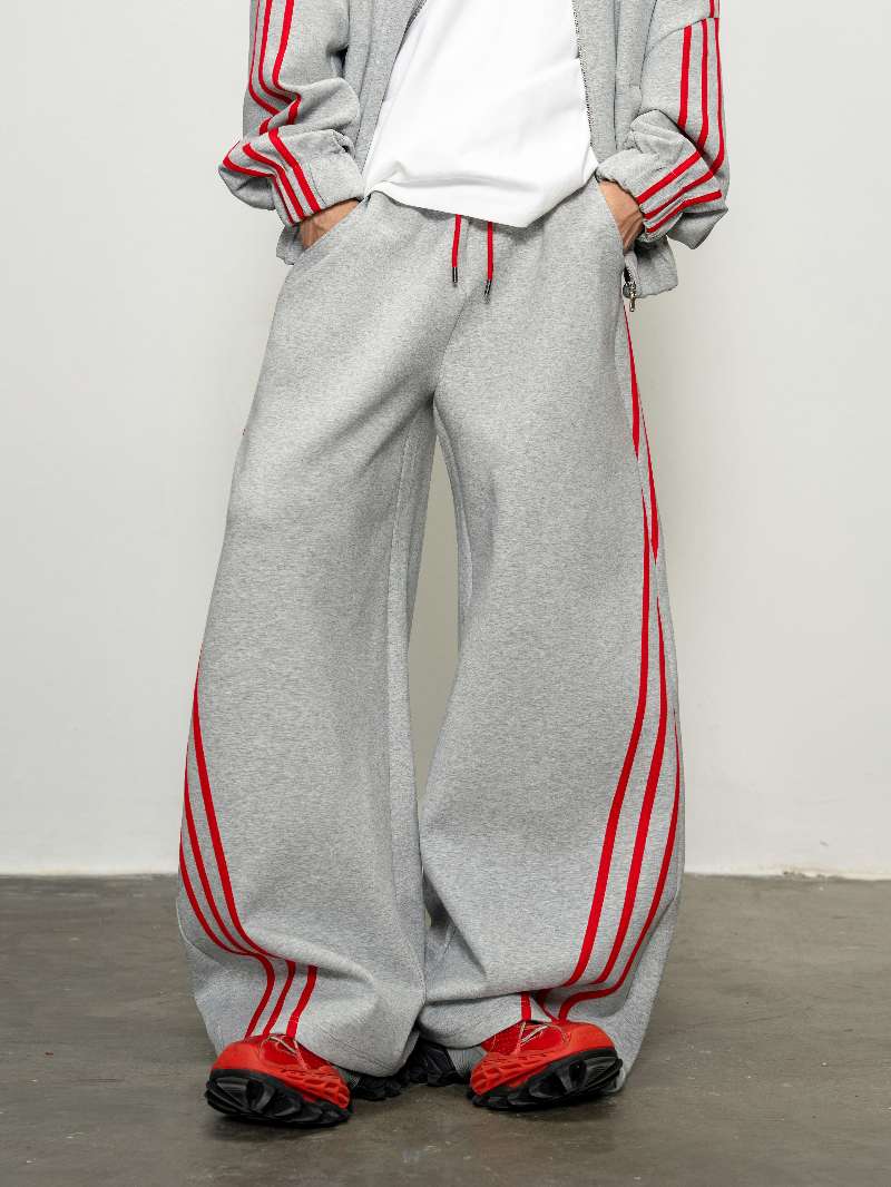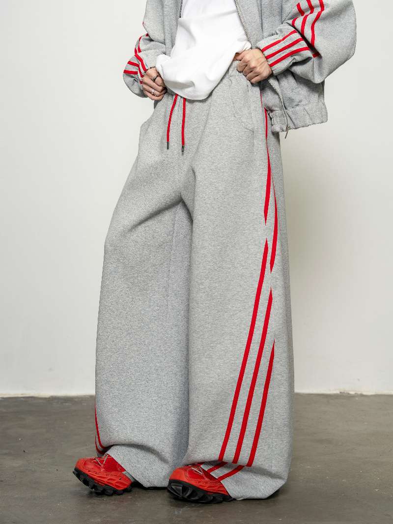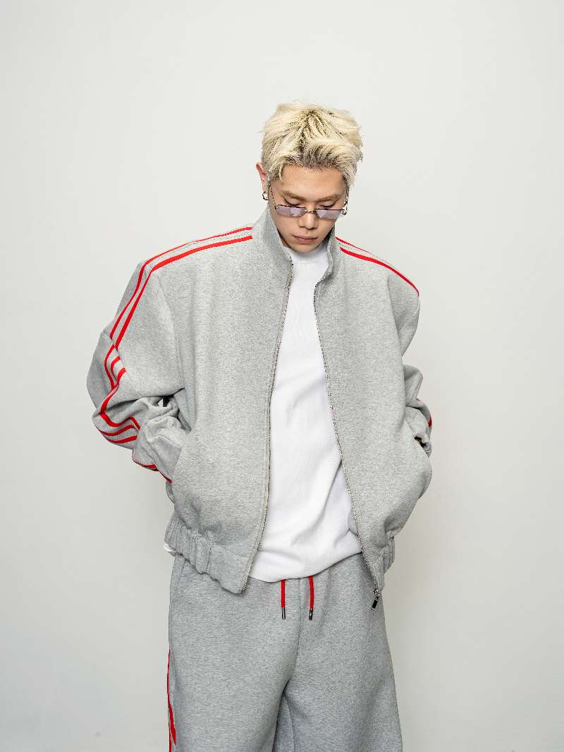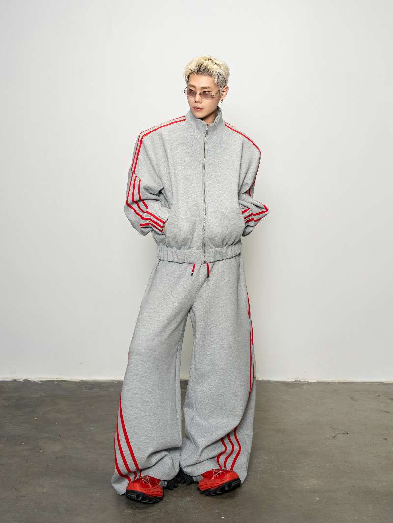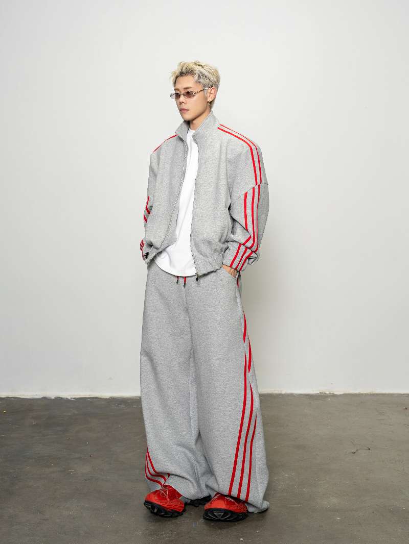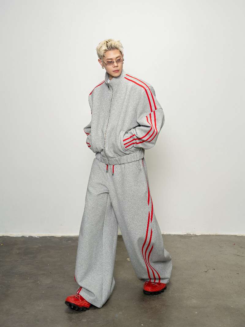 DBW Doublewin Gray Red Color-Block Webbing Stand-Collar Sport Set